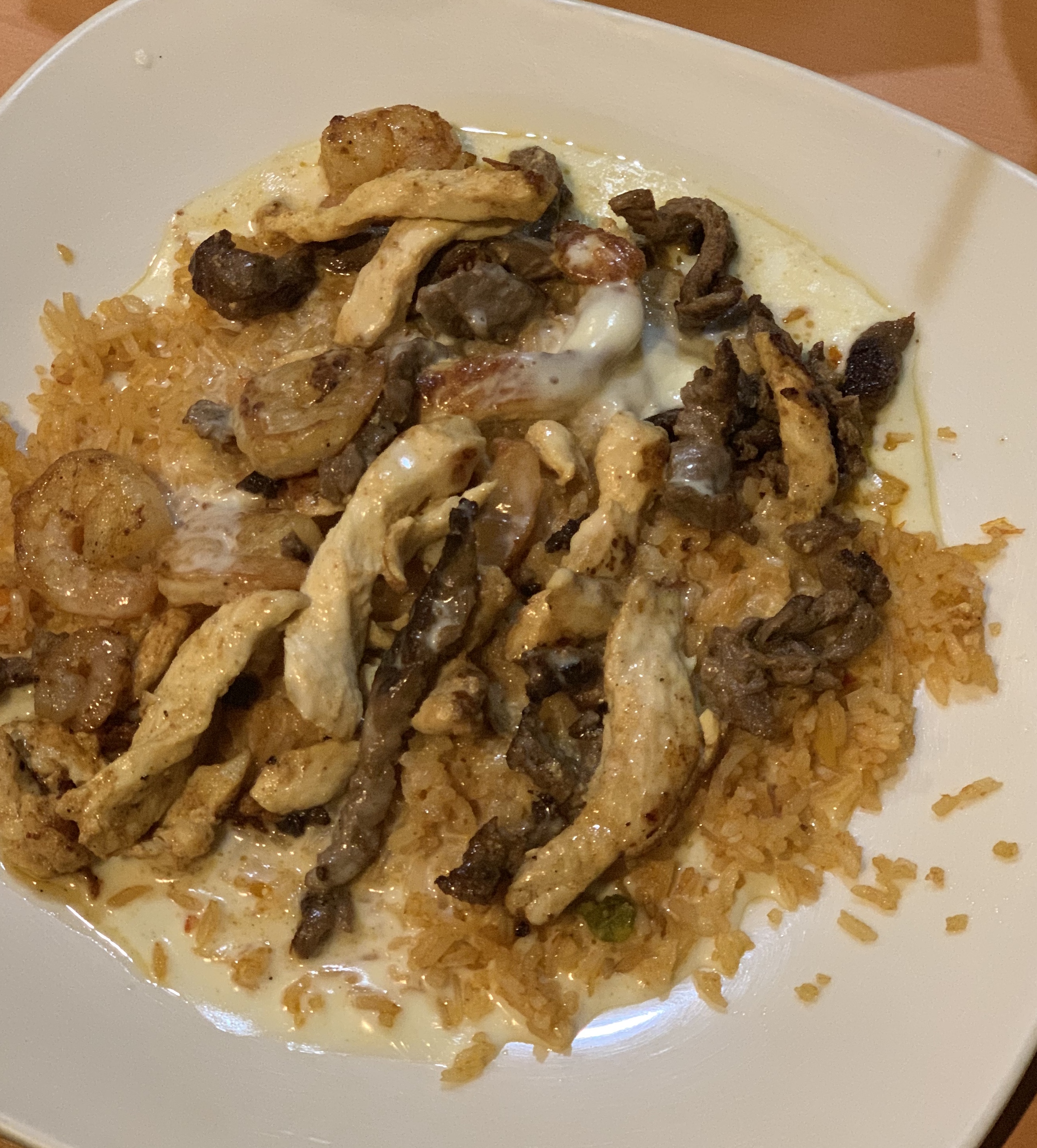 The food was amazing. I ordered the “Loco Rice.” This dish had steak, shrimp, and chicken over a bed of queso rice. The meats were all cooked perfectly– the steak well done and seasoned well, the chicken perfectly grilled and golden, and the shrimp grilled to perfection. I have to say though, the steak was my absolute favorite. I would rate all of the meats on the dish a 4.5 out of 5. Each were cooked to perfection, and I had absolutely no complaints about them.